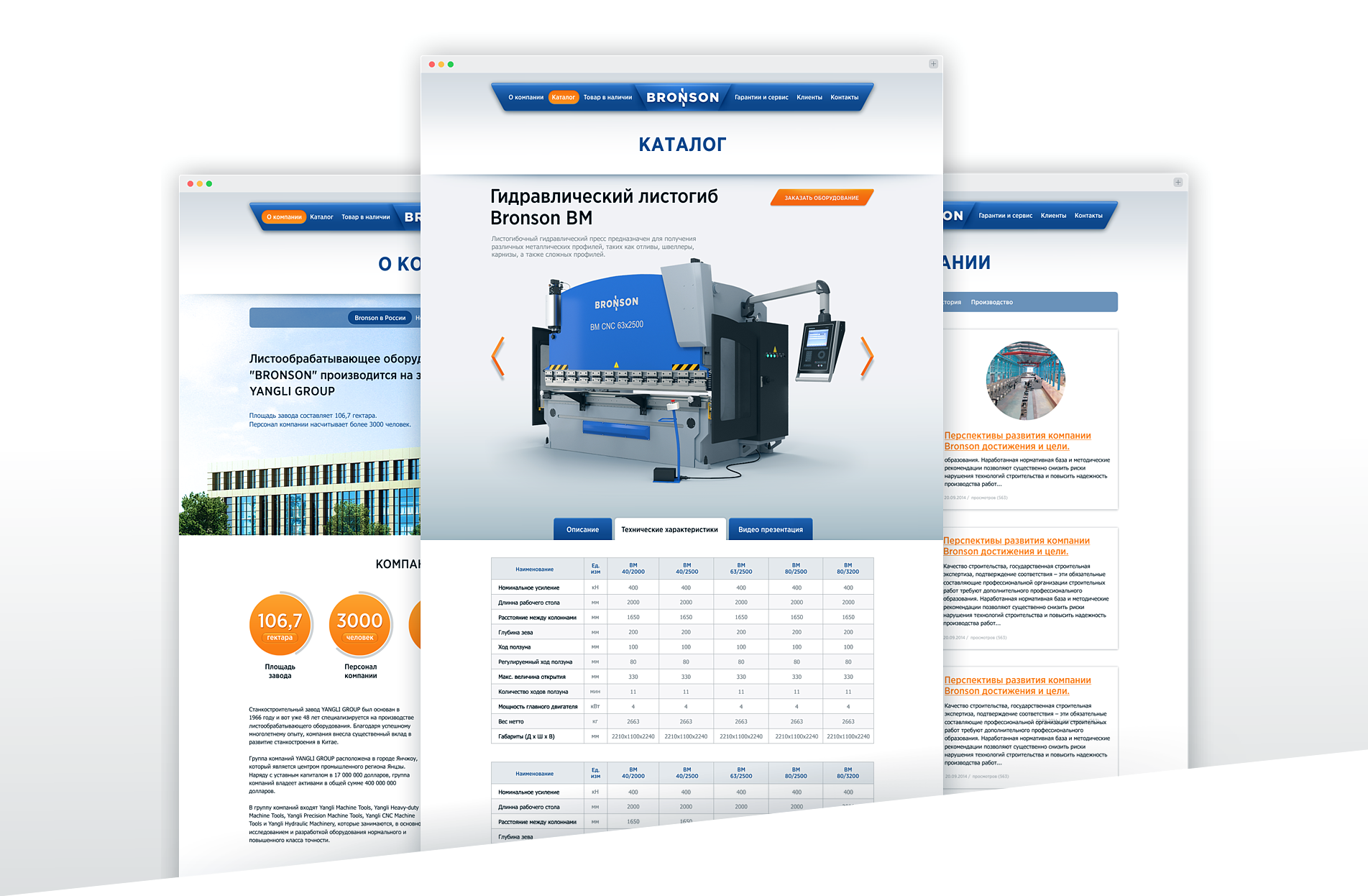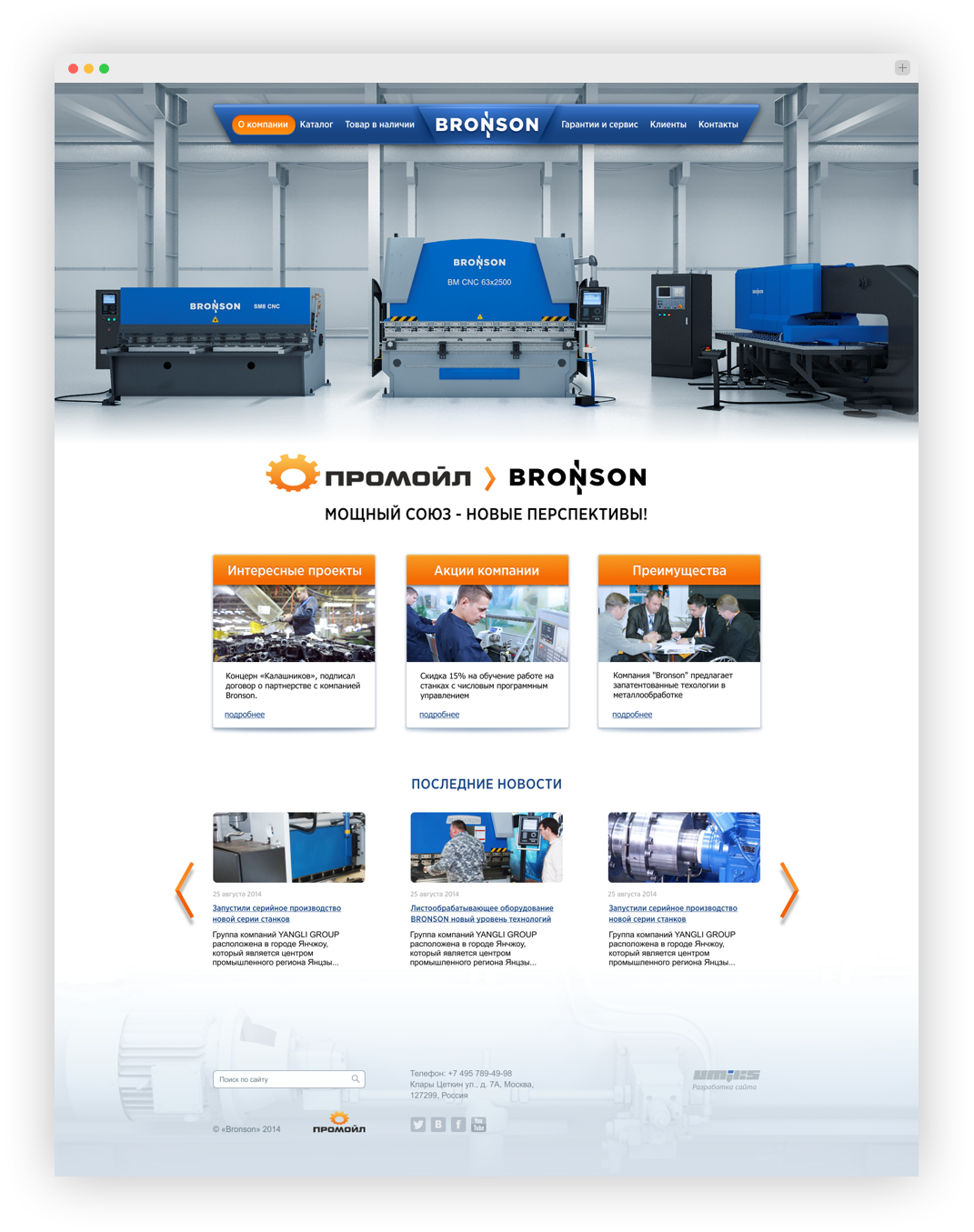 Новый сайт презентующий продукцию компании Bronson.