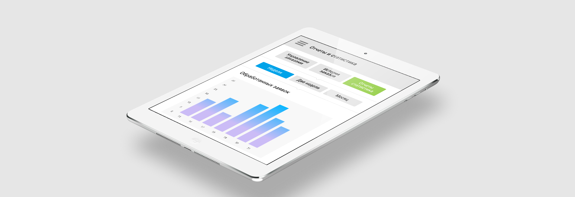 управление заказами. А также отчетность и графики доходности.